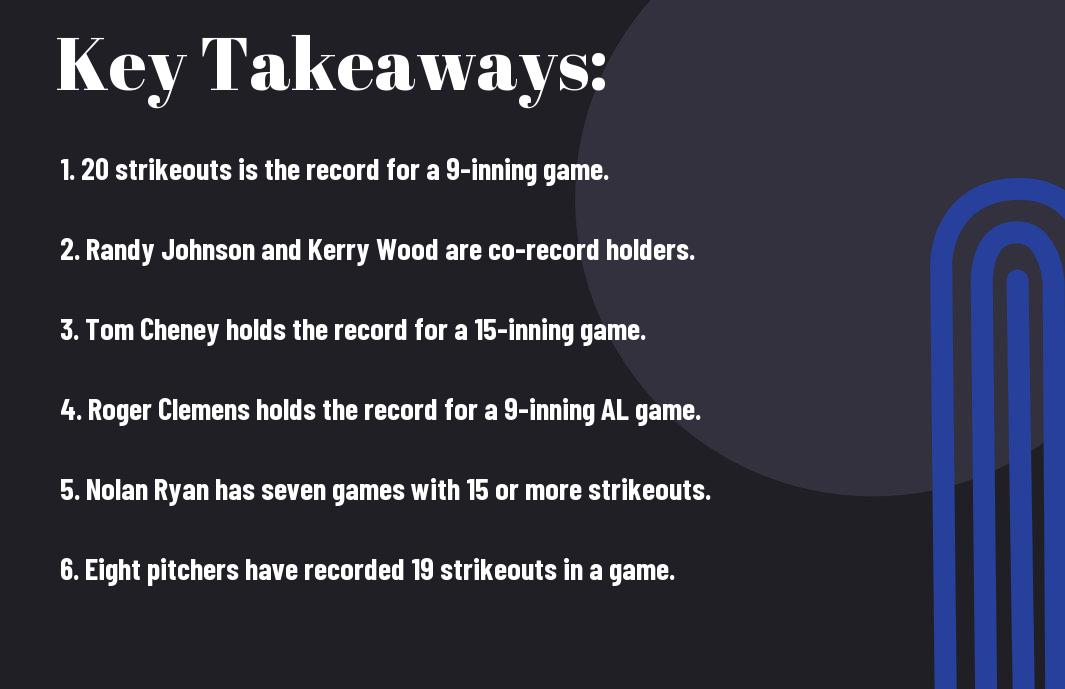 • The record for most strikeouts in a game is an impressive feat that showcases a pitcher’s dominance on the mound, highlighting their skill, control, and velocity.