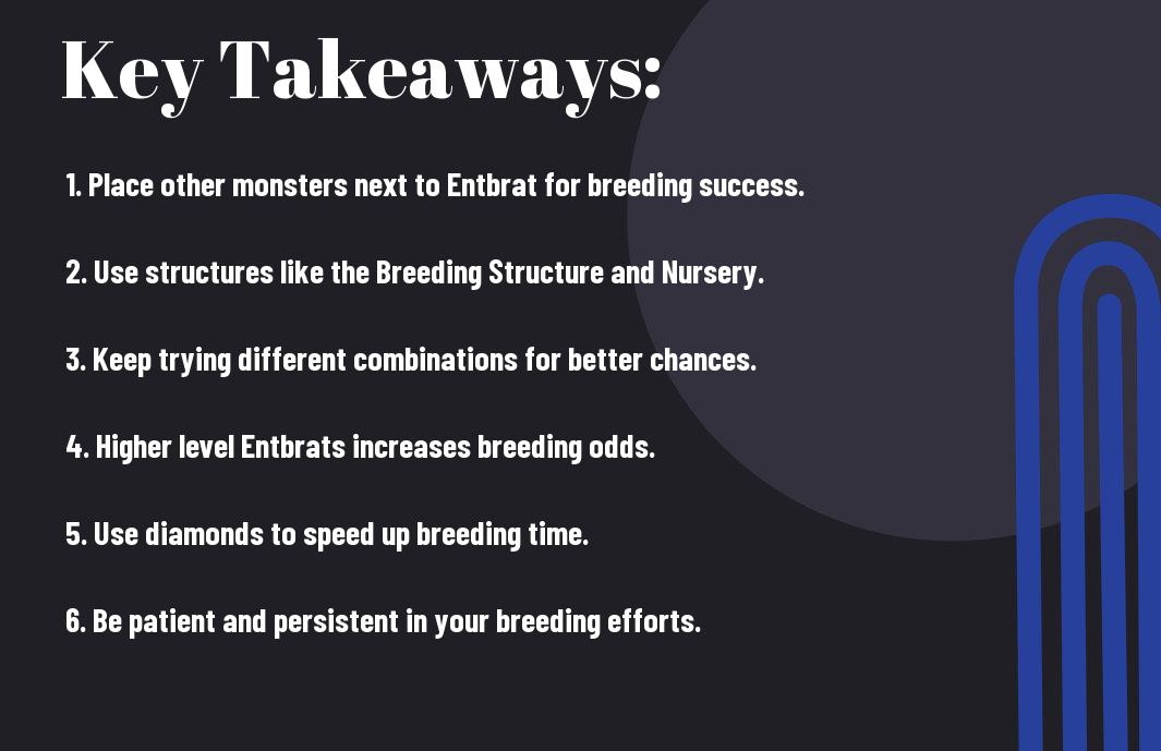 A: While there are no guaranteed methods to breed an Entbrat, some players have reported success by using higher level monsters, and adding decorations to the breeding structure to increase the chances of breeding rare monsters.