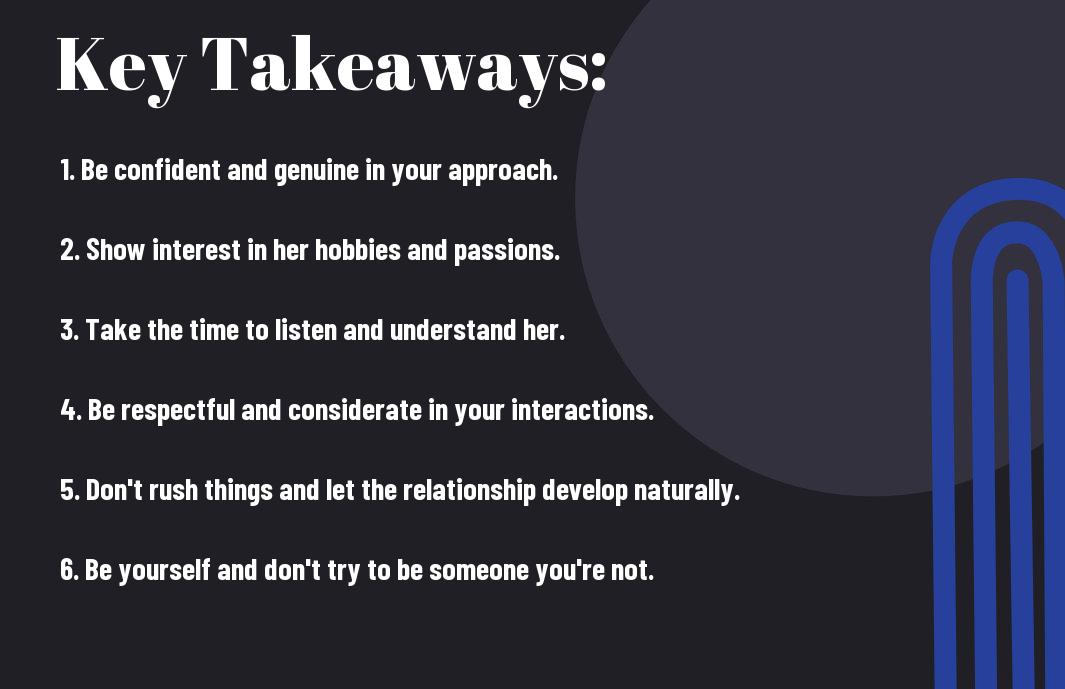 A: Approach her with confidence and respect. Make eye contact, smile, and start a conversation about something you both have in common. It’s important to be genuine and not come across as pushy or insincere.