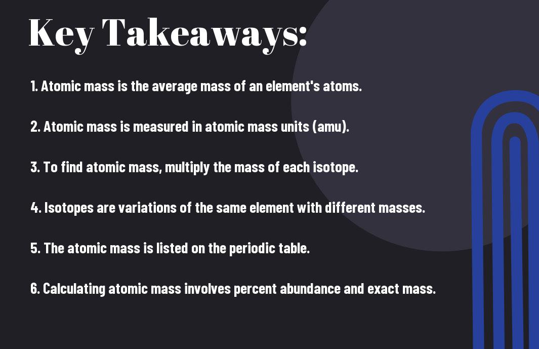 Thoroughly understanding the concept of atomic mass is crucial for anyone hoping to excel in the field of chemistry. Atomic mass is a fundamental concept that is used to calculate several important chemical quantities, such as molar mass and molecular weight. In this blog post, I will break down the process of finding an atomic mass in a simple and understandable way, equipping you with the knowledge and tools necessary to succeed in your chemistry studies. By the end of this post, you will be able to confidently calculate the atomic mass of any element, accurately interpreting the composition and properties of different substances.