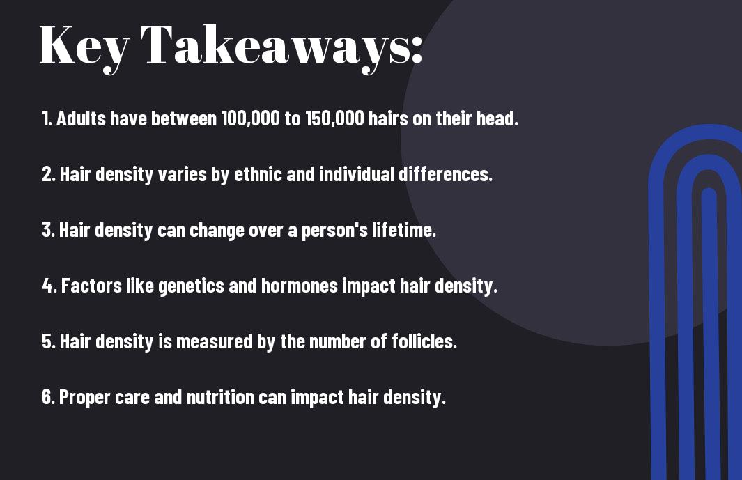 Globally, the average human scalp holds between 100,000 to 150,000 hairs, and understanding the density of your hair can provide valuable insights into overall hair health. In this blog post, I will delve into the fascinating world of hair density, explaining the factors that influence it, and how to properly assess your own hair density. Understanding the density of your hair is crucial for determining the best styling and care practices, and can even serve as a valuable indicator of your overall health. So, if you’ve ever wondered just how many hairs are on your head, stick around and let’s explore together.