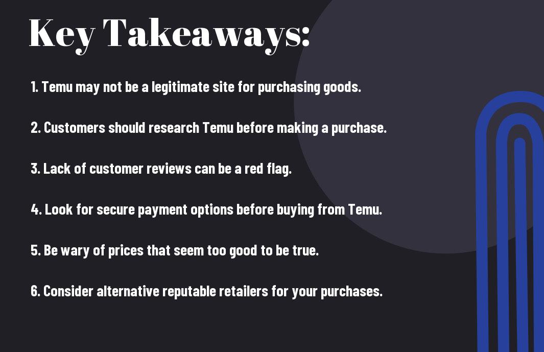 Now that we have examined the various aspects of Temu as an online shopping site, it is important to take away a few key points. While there are some positive aspects to the site such as a wide variety of products and competitive prices, there are also some red flags such as limited or non-existent customer reviews, and questionable return policies. Before making a purchase on Temu, it is vital for you to do thorough research and consider all the factors I have discussed in this article. Your hard-earned money and personal information are at stake, so make sure you are confident in the legitimacy and trustworthiness of the site before proceeding with any transactions.