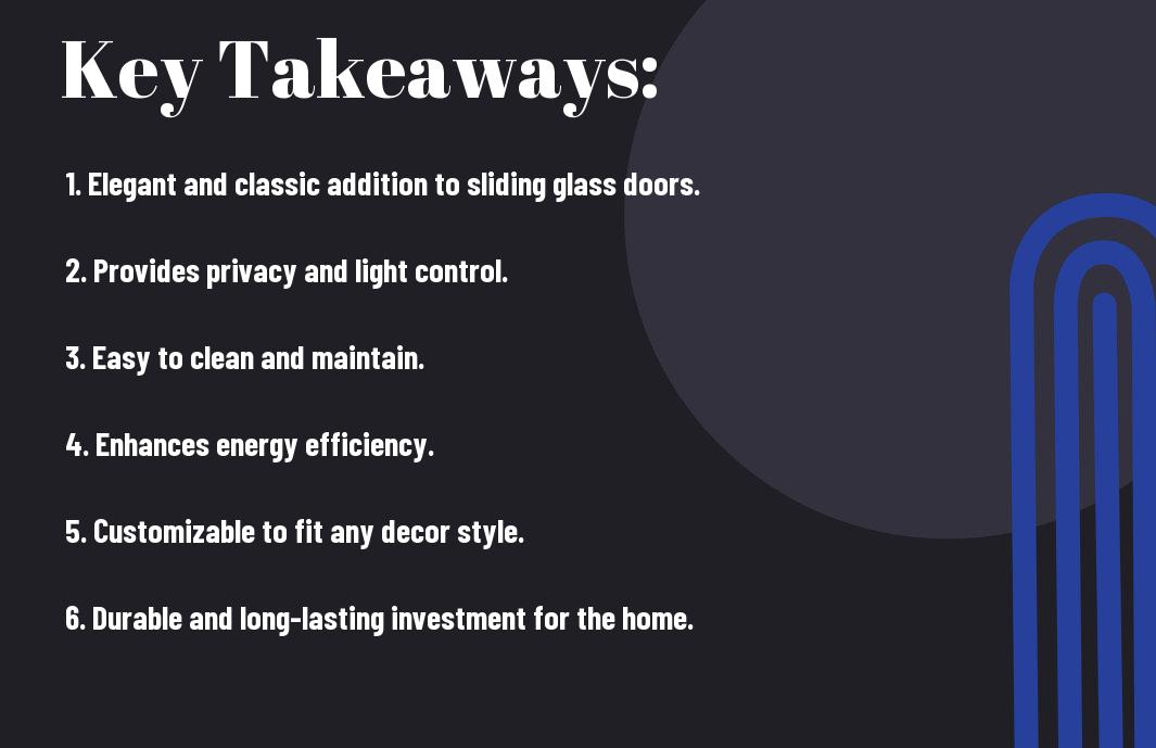A: Plantation shutters offer several benefits for sliding glass doors, including enhanced privacy, insulation, and energy efficiency. They also add a touch of elegance and sophistication to any room and are easy to maintain and clean.