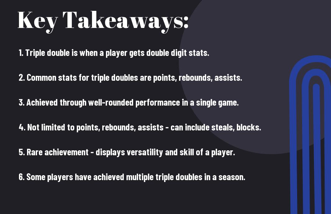 As a basketball fan, you may have heard the term “triple double” being thrown around during games, but do you really know what it means? I’m here to give you the lowdown on this impressive basketball feat. A triple double occurs when a player records double digits in three statistical categories during a game, typically points, rebounds, and assists. Achieving a triple double is not an easy task and is a sign of a well-rounded and versatile player. It demonstrates an ability to contribute in multiple facets of the game, making it a rare and coveted accomplishment. If you’re curious about the details of how a triple double is achieved and who the all-time leaders are in this category, keep reading to find out!